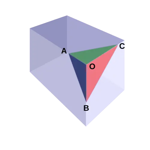 Wenn ein Tetraeder eine rechtwinklige Ecke (wie eine Würfelecke) besitzt, dann ist die Summe der quadrierten Flächeninhalte der an der rechtwinkligen Ecke anliegenden Flächen gleich dem quadrierten Flächeninhalt der dem rechten Winkel gegenüberliegenden Fläche.