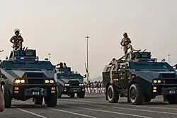 Dank umfangreicher Unterstützung durch die Vereinigten Staaten und dem Vereinigten Königreich[3][4] hat sie sich zu einer gut ausgestatteten und mobilen Einheit entwickelt. Die saudischen Offiziellen haben ihre Aufgaben weit über die einer typischen Reservistengruppe hinaus ausgedehnt und die Nationalgarde eingesetzt, um die Ordnung im In- und Ausland aufrechtzuerhalten, wie ihre interventionistische Rolle[5] bei der Eindämmung der bahrainischen Demokratiebewegung im Jahr 2011 gezeigt hat.[6]