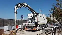 Ein Saugbagger ist eine mobile Baumaschine, die mithilfe von Unterdruck feste oder flüssige Materialien absaugen kann. Die Saugeinheit und der Auffangbehälter sind auf einem Lkw-Fahrgestell montiert, wodurch die Maschine flexibel auf Baustellen eingesetzt werden kann.