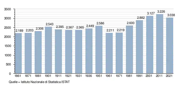 - ↑ Bilancio demografico e popolazione residente per sesso al 31 dicembre 2024. ISTAT. (Bevölkerungsstatistiken des Istituto Nazionale di Statistica, Stand 31. Dezember 2024).