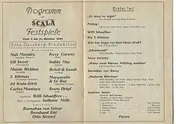 Die Scala in Berlin war von 1920 bis 1944 eine der berühmten Varieté-Bühnen in Deutschland.[1] Hier traten internationale Künstler wie der Jongleur Enrico Rastelli und der Clown Grock auf. Legendär waren auch die Scala-Girls, eine hauseigene Tanztruppe, die ab 1934 spärlich kostümiert sogar in ganz Deutschland auftrat.