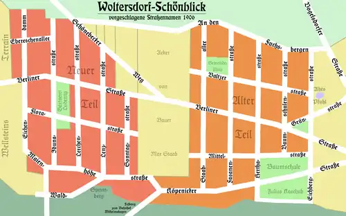 - ↑ Marianne Liebermann: Aus Bauernland wird Bauland. In: Woltersdorfer Verschönerungsverein „Kranichsberg“ e. V. (Hrsg.): Woltersdorfer Hefte. 2. Auflage. Band 1, August 2003, S. 32–33.