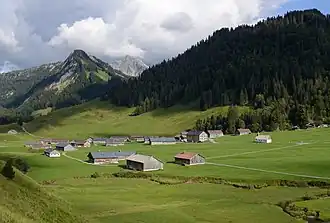 ![]() Im Vordergrund der Bach Schönenbach und das Vorsäß Schönenbach | ||
