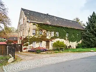 - das Mühlengebäude (An der Döllnitz 14; mit teilweise noch vorhandener technischer Ausstattung), das bau-, orts- und technikgeschichtlich von Bedeutung ist. Die ehemalige Wassermühle, bezeichnet mit 1887, ist ein zweigeschossiger massiver Putzbau mit Satteldach (Biberschwanzdeckung) und Mezzaningeschoss. Fenster- und Türgewände sind aus Sandstein, Fenster und Fensterscheiben sind original vorhanden. Die Tafel über der Tür, bezeichnet mit 1887, zeigt ein Mühlenrad und Zirkeldarstellung. Teile der Putzgliederung sind erhalten.
