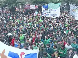 Bei den Schüler- und Studentenprotesten in Chile im Jahr 2011 und im Jahr 2012, an denen sich zeitweise auch Gewerkschaften des produzierenden Gewerbes beteiligten, wurden umfassende Reformen im Bildungssystem des Landes gefordert. Es waren die größten Proteste in Chile seit der Rückkehr zur Demokratie im Jahre 1989.[1] Die Bewegung wurde vor allem von Studentenverbänden organisiert, jedoch nahmen zeitweise auch Lehrer, Hochschulprofessoren und Eltern teil.