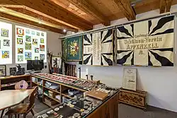 Das Museum stellt die Gründerfahne des Kantonalschützenvereins von 1826 sowie mehr als dreissig weitere Fahnen von Schützenvereinen aus. Viele von ihnen sind aufwendig mit Stickereien von heraldischen Motiven mit Seiden- und sogar Goldfäden auf Damast gearbeitet. Auch die Tragegurte für die Fahnen sind teilweise bestickt und mit Widmungen versehen.