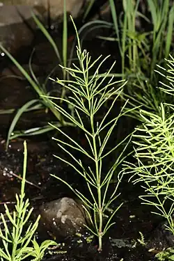 • Binsenförmiger Schachtelhalm oder Zwerg-Schachtelhalm (Equisetum scirpoides Michx.): Er ist auf der Nordhalbkugel weitverbreitet.