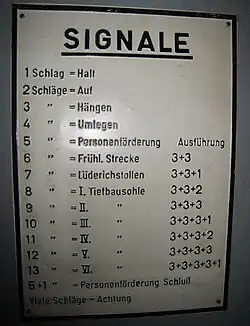 - ↑ a b Bergverordnung für Schacht- und Schrägförderanlagen (BVOS) vom 13. Juli 2005 § 19 Signale und Abfahrbefehle.