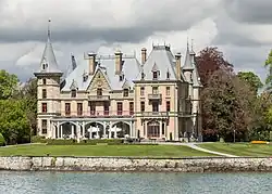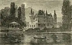 Abraham Denis Alfred de Rougemont (1802–1868) und seine Frau Sophie de Pourtalès (1807–1882) liessen das Schloss 1846–1854 erbauen, nach Plänen des Neuenburger Architekten James Victor Colin (1807–1886), der an der École des Beaux-Arts in Paris studiert hatte. Von Colin stammen die Grundrisse und die Gebäudekomposition, welche mittelalterliche Elemente mit solchen der französischen Renaissance verbindet: Wohnturm, Palas, zentrales Corps de Logis und Ecktürme.