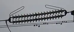 Funkenstrecken dienten früher als einfacher und sehr grober Überspannungsableiter im Bereich der Isolatoren von Freileitungen. Diese Funkenstrecken sind in Form von Hörnern an den Enden des Isolators ausgebildet und sind nicht mit den ähnlich aussehenden Koronaringen zu verwechseln. Die Hörner dienen dazu, im Fall eines Überschlages den sehr heißen Lichtbogen vom Isolator entfernt zu halten und so Schäden am Isolator zu vermeiden.