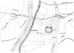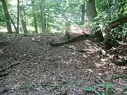 Die Anlage an sich stellt sich als abgerundetes, halboffenes Rechteck dar, dessen eine Seite vom Bergabfall begrenzt wird. Der Wall ist ca. 2,5 m breit und rund 0,5 m hoch. Die Gräben sind rund 2,5 m breit und 0,2 m tief. Die talabwärts gerichtete Seite hat eine Länge von ca. 26 m. Die Schanze überlagert den vormals hier verlaufenden Limeswall.