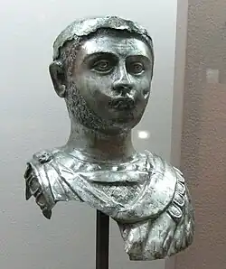 Ein bedeutendes Stück aus dem Fundkomplex ist die 17 cm hohe silberne Büste eines bärtigen Mannes mit Lorbeerkranz, der einen Schuppenpanzer und darüber ein mit einer Fibel verschlossenes paludamentum trägt, es handelt sich sehr wahrscheinlich um den Kaiser Gallienus. Die Büste gelangte möglicherweise als kaiserliches Geschenk (largitio) in die Hände seines Besitzers und war zusammen mit den Götterstatuetten im Lararium des Hauses aufgestellt[2].