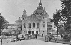 Das Schauspielhaus in Frankfurt am Main war ein 1899 bis 1902 errichteter Theaterbau am Gallustor. Der historistische Bau des Berliner Theaterarchitekten Heinrich Seeling „signalisierte mit exotisch unterfütterter Neorenaissance und einem freien Zitat der Berliner Reichstagskuppel staatstragende Bedeutung, während Jugendstildetails dezent den Willen zur Moderne andeuteten“.[1] In den 1920er Jahren wurde es ein Zentrum des expressionistischen Theaters in Deutschland und zur „Talentschmiede für Autoren und Schauspieler“.[2] Bei einem Luftangriff auf Frankfurt wurde das Schauspielhaus 1944 im Inneren teilweise zerstört, äußerlich blieb die Fassade nahezu vollständig erhalten.