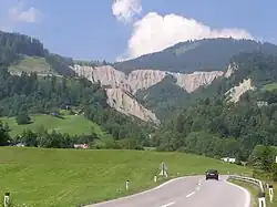 Das Schesatobel im Gemeindegebiet von Bürserberg (Vorarlberg, Österreich) ist einer der größten Murbrüche Europas in den Ostalpen.
