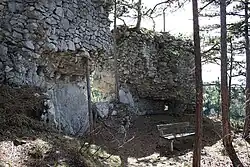 Die Ruine der Höhenburg befindet sich auf einem isolierten Felskegel östlich des Ortes. Der Zugang erfolgte nordwestseitig über ein schmales Felsband direkt unterhalb des Turmes, an dessen Ende eine Leiter zum Turmeinstieg hinauf führte. Der Zugang ist Touristen und nicht berechtigten Personen leider verwehrt, da die Burgruine nicht mehr den Sicherheitsansprüchen genügt.