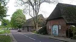 Das eingeschossige traufständige Gebäude in Fachwerk mit Steinausfachungen, mit reetgedecktem Walmdach mit Uhlenloch, wurde 1839 (Inschrift) gebaut. Die lange Scheune hat zwei Querdurchfahrten. An der Straße steht davor ein nicht denkmalgeschütztes giebelständiges verklinkertes Wohn- und Wirtschaftsgebäude des Hofes mit reetgedecktem Krüppelwalmdach und der Grooten Door im Niedersachsengiebel.[1]