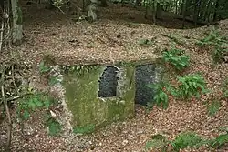 Ehemaliger Schießstand im Wolfer Wald mit Blick zum Zielwall mit Unterstand links -