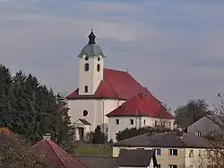 1805 wurde dann eine eigenständige Ortschaft der Pfarre geschaffen,[2] mit Teilen der Ortschaften Thanstetten, Droißendorf und Matzelsdorf, seinerzeit 68 Nummern.[6] 1879 wurde von der Gemeinde das ehemalige Peterederhaus erworben, und Gemeindehaus, 1888 auch Postamt.[11] Das heutige Gemeindeamt steht neben der Schule, die 1887 gebaut und 1896 erweitert wurde.[9]