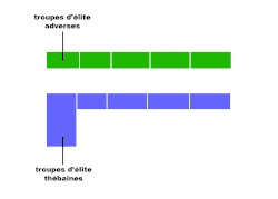 Bei Leuktra drehten die Thebaner diesen Effekt nun um, indem sie ihren linken Flügel tiefer und dichter staffelten und mit Eliteeinheiten besetzten, sowie den linken Flügel weiter vorne marschieren ließen. Der überraschend starke linke Flügel der Thebaner traf nun (noch vor dem Zusammenprall der restlichen Phalanx) auf den rechten Flügel der Spartaner und überrannte diesen förmlich. Nach dieser Niederlage des elitären rechten Flügels (wo auch der spartanische König gestanden hatte) brach der schwächere Rest der spartanischen Schlachtordnung schnell zusammen.