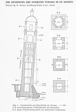 - ↑ Robert Maillart: Die Erhaltung des schiefen Turmes in St. Moritz. S. 30.
