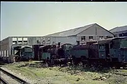 - Weitere Minenbahnen: In den 1930er Jahren wurden in der Küstenebene von Kurbin bei Sukth-Vendasi westlich von Thumana und bei Patok westlich von Laç von privaten Unternehmen zwei Schmalspurbahnen für Transport von Mineralien errichtet, die aber kurz nach dem Krieg abgebaut wurden.[8][9] Einfachste Feld- und Grubenbahnen gab es später auch in anderen Minen und Forstbetrieben; unterschiedlichste Grubenbahnen zum Transport von Loren sind bis heute in Betrieb.[10][11][12]
