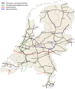 Der Schienenverkehr in den Niederlanden findet vor allem auf normalspurigen Bahnnetzen statt. Bereits frühzeitig wurden viele Strecken elektrifiziert.