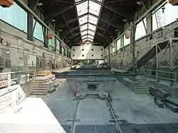 1851 wurde eine überdachte Anlage zur Montage von Dampfschiffen errichtet, die 1877 erweitert wurde. Sie brannte im Juli 1889 mit dem Dampfschiff König Karl vollständig ab, wurde aber 1890 wieder aufgebaut und 1931 vergrößert. Bei einem Luftangriff 1944 brannte die Werft zusammen mit dem Dampfschiff Friedrichshafen auf der Helling aus. Sie wurde provisorisch repariert und 1949/52 neu aufgebaut. Seit 1967 ist sie zentrale Überholungs- und Reparaturwerkstätte der Bodensee-Schiffsbetriebe.[13] Bei intensiven Landrevisionen werden jeden Winter, wenn der Schiffsbetrieb ruht, zwei Schiffe jeweils etwa vier Monate lang komplett saniert. So bleiben auch ältere Schiffe, wie die unter Denkmalschutz stehende Baden (Baujahr 1935), verkehrssicher. Ausgeführt werden die Arbeiten von Mitarbeitern der Werft, Fremdfirmen und den Besatzungsmitgliedern, die alle handwerklich ausgebildet sein müssen.[14] Neubauten, Umbauten und größere Reparaturen wurden dagegen von der Bodan-Werft bis zu ihrer Schließung 2011 durchgeführt. Wenn das größte Schiff der BSB, die Autofähre Friedrichshafen, zur Landrevision ausgewassert wird, bleiben auf jeder Seite nur fünf Zentimeter „Luft“. Für größere Schiffe ist die 60 Meter lange BSB-Werft zu kurz.[15][16]