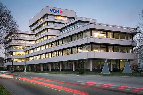 Nach Entwürfen des Architekten Walter Henn entstand in den Jahren von 1970 bis 1973 auf annähernd dreieckiger Grundfläche ein Neubau mit zahlreichen, in den oberen Etagen zurückgestaffelten Großraumbüros. Knapp zwei Jahrzehnte später plante die Architektengemeinschaft Leonhardt-Schirmer-Meyer zunächst 1991 bis 1994, dann erneut 1995 bis 1998 realisierte Erweiterungen, bei denen gleichzeitig der Haupteingang der VGH an die Straße Warmbüchenkamp verlegt wurde.[2]