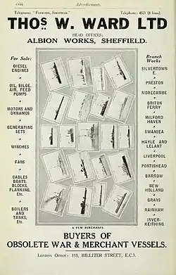 Ab 1919 begann eine Hochphase des Schiffsabbruchs in Großbritannien, denn der hohe anfängliche Stahlbedarf fiel mit großen Tonnageüberhängen in der Militärschifffahrt zusammen. Die britische Admiralität veräußerte hunderte von überzähligen Fahrzeugen für verhältnismäßig geringe Summen. So wurden Sloops oder Minensuchboote, die vorher für etwa 60.000 Pfund gebaut worden waren, für 1000 Pfund abgestoßen. Das führte zu einem beispiellosen Anstieg der Neugründungen von Abbruchplätzen. Bis 1923 wurden rund 60 meist kleine Betriebe gegründet, um am Boom zu partizipieren. Aber auch große Betriebe prosperierten. So erwarb Thomas W. Ward im Mai 1921 ganze 113 Abbruchschiffe „en bloc“ und gründete allein acht neue Abbruchplätze, darunter Milford Haven, Hayle, Grays und den heute noch existierenden Betrieb in Inverkeithing. Sein Mitbewerber Alloa Shipbreaking, aus dem 1929 Metal Industries wurde, schuf eine große Abbruchwerft in Charlestown, westlich von Rosyth. 1926 pachtete Alloa Shipbreaking Teile des Rosyth Dockyard, wo auch die größten der damaligen Schiffe zerlegt werden konnten. Das traf insbesondere auf die vom Bergeunternehmen Cox & Danks in Scapa Flow gehobenen ehemaligen deutschen Kriegsschiffe zu, die in herkömmlichen Abbruchbetrieben nicht verschrottet werden konnten.