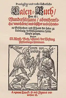 - ↑ Stefan Ertz (Hrsg.): Lalebuch. Kap. 1, S. 8. Kapitel bei zeno.org: http://www.zeno.org/Literatur/M/Anonym/Erz%C3%A4hlungen/Das+Lalebuch/Eyngang+in+diese+Histori+-+darinnen+vermeldet.