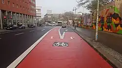 Auf der Brücke befinden sich beidseitig aufgemalte Radfahrstreifen. Im Oktober 2019 wurde auf der Nordseite für die Einfahrt auf die Holzmarktstraße ein Radfahrstreifen in Mittellage aufgemalt und einige Tage später mit roter Farbe ausgemalt. Radaktivisten kritisierten die Maßnahme, da Fahrradweichen grundsätzlich Unsicherheit erzeugen und insbesondere Menschen mit höherem Sicherheitsbedürfnis vom Radfahren abhalten würden.[18] Gegen die Einrichtung der Fahrradweiche wurde ein Widerspruch eingelegt, da sie in mehreren Punkten gegen das Mobilitätsgesetz verstoßen würde.[19]