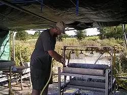 In der Archäobotanik wird geschlämmt, um verkohlte Pflanzenreste aus dem Sediment auszusondern.[3]