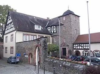 - ↑ Die Baubeschreibung orientiert sich weitgehend an: Landesamt für Denkmalpflege Hessen (Hrsg.): Schlösschen, Rathaus, Untergasse 16 In: DenkXweb, Online-Ausgabe von Kulturdenkmäler in Hessen.