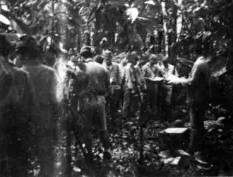 ![]() General Kiyotake Kawaguchi bei der Einweisung der japanischen Kommandeure kurz vor dem Beginn des Angriffs auf Henderson Field | |||||||||||||||||