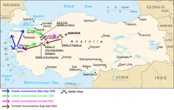 Der Rückzug vom Sakarya markierte das Ende der griechischen Ambitionen in Anatolien. Im Mai 1922 wurden General Papoulas und sein gesamter Stab ersetzt, sein Nachfolger war General Georgios Hatzianestis.[20] Auf der anderen Seite kehrte Mustafa Kemal als Sieger nach Ankara zurück und bekam von der türkischen Nationalversammlung die Titel Generalfeldmarschall und Gazi (türkisch-islamisch für Eroberer) verliehen.[22]