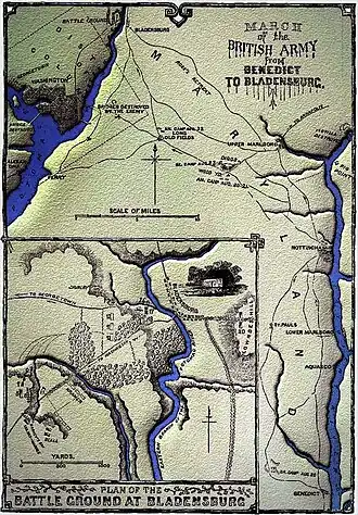Am 19. August 1814 landeten 4500 britische Soldaten unter dem Befehl von General Robert Ross bei Benedict (Maryland), verstärkt um ein Kommando der Royal Navy unter Konteradmiral George Cockburn. Da US-Kriegsminister John Armstrong sich weigerte zu glauben, dass sich der Angriff gegen die strategisch unbedeutende Hauptstadt richten könnte, konzentrierte er alle verfügbaren Mittel auf die Verteidigung Baltimores. Obwohl sich die Briten bei ihrem Marsch entlang des Patuxent River nicht beeilten und sechs Tage für eine Strecke von etwa 50 Meilen (80 Kilometer) brauchten, gelang es den Amerikanern nicht einmal, den Vormarsch durch das Zerstören der vorhandenen Brücken zu verlangsamen. Der gefährlichste Gegner der Invasoren war bei diesem Vorstoß die glühende Sommerhitze. Am 23. August erhielt Ross einen Befehl Cochranes, den Vormarsch abzubrechen, wurde aber von Cockburn überredet, ihn fortzusetzen. Zum Kommandeur der nun hastig zur Verteidigung der Hauptstadt zusammengezogenen amerikanischen Truppen wurde Brigadegeneral William Winder bestellt, ein Anwalt aus Baltimore. Er verdankte sein Kommando nicht militärischen Verdiensten, sondern politischer Einflussnahme und hatte seine mangelnden Fähigkeiten bereits 1813 unter Beweis gestellt, als er in der Schlacht bei Stoney Creek von unterlegenen britischen Truppen besiegt und gefangen genommen worden war. Winder verfügte über 120 Dragoner, 300 reguläre Soldaten und 1500 Mann Milizen sowie Artillerie. Am Tag der Schlacht kamen weitere 5000 Mann Milizen sowie 450 Marineinfanteristen und Seeleute einer Kanonenbootflottille der US Navy unter dem Befehl von Kapitän Joshua Barney mit fünf Geschützen hinzu. Die Amerikaner waren damit den Angreifern deutlich überlegen. Winder hatte den zusätzlichen Vorteil, seine Verteidigungsstellung selbst wählen zu können. Er postierte seine Truppen auf einem Höhenrücken bei Bladensburg, östlich von Washington.