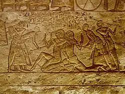 Am 20. April 1274 v. Chr.[12] wurden zwei Beduinen von ägyptischen Wachposten aufgegriffen, die erklärten, mit ihren Stämmen zu Ramses überlaufen zu wollen: