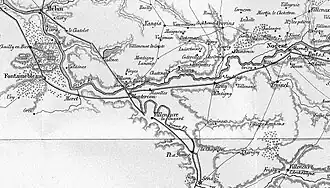 Nördlich der Bergwand erstreckt sich 3 Kilometer nach Norden ein Plateau weitgehend frei von Wäldern. Von der Pariser Straße führten zwei Wege auf dieses Plateau hinauf, der erste zum Château Surville, einem Herrenhaus oberhalb der beschriebenen Bergwand, der zweite weiter westlich zu dem Dorf Ormeaux, heute der nördlichste Stadtteil Montereaus.[3] Nordwestlich von Ormeaux liegen die beiden Weiler Plat Buisson und Les Coureaux, weiter im Nordosten das Dorf Forges.