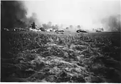 Der Befehlshaber der polnischen Stellungen war Hauptmann Władysław Raginis, der schwor die Stellungen nicht lebend dem Feind zu übergeben. Die Kämpfe dauerten zwischen dem 7. und dem 10. September 1939 an. Die Verteidigungsstellung von Wizna wird auch als „polnische Thermopylen“ bezeichnet. 720[1] polnischen Verteidigern standen weit über 40.000[2] Angreifer des XIX. Armeekorps unter General der Panzertruppe Heinz Guderian in der Heeresgruppe Nord gegenüber. Die mangelnde Artillerieunterstützung auf Seiten der Polen und die zahlenmäßige Überlegenheit an Soldaten und Panzern auf Seiten der Wehrmacht ermöglichte es den Deutschen, die Bunker zu stürmen und zu sprengen. Die polnischen Besatzungen leisteten großen Widerstand und verzögerten den Vorstoß des XIX. Armeekorps. Auf der Rückseite des Panzerbildes hat ein Infanterist vermerkt: „Nach sehr schweren Verlusten, da Panzerregimenter wegen zerstörter Narew-Brücke auf Kriegsbrücke warten mußten, können wir mit ihrer Unterstützung endlich Kurpiki nehmen. Es wird erbittert verteidigt.“ Ausschlaggebend war die Sprengung der Brücke über den Narew am 7. September durch polnische Pioniere, als deutsche Panzer diesen zu überqueren versuchten. Eine schnelle Umgehung der polnischen Stellungen war nun nicht möglich. Dies zwang die Wehrmacht zum zeitaufwendigen Errichten einer schwimmenden Pontonbrücke über den an dieser Stelle 60 Meter breiten Narew. Zum Symbol der Verteidigung wurde der Befehlshaber der Stellung, der die Soldaten des letzten Bunkers vom Eid entband, während er selbst in seiner Stellung blieb und mit einer Handgranate drei den Bunker stürmende deutsche Soldaten und sich selbst tötete.