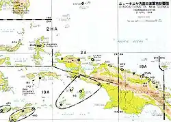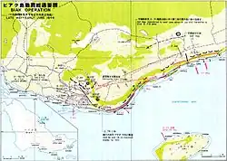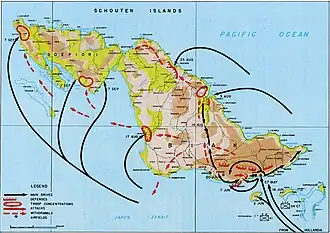 ![]() Karte der Insel Biak mit den alliierten Truppenbewegungen | |||||||||||||||||
