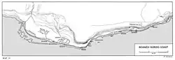 Im Südwesten hingegen richteten die japanischen Truppen bei Wardo, einem Ort unmittelbar an der westlichen Küste, eine Verteidigungsstellung ein, von der aus die Kreuzung zwischen der Küstenstraße und einer der wenigen Nord-Süd-Verbindungen beherrscht werden konnte. Im Nordosten waren beidseits der Korim-Bucht, ein dominanter Einschnitt an der Nordseite der Inselmitte, Stellungssysteme vorbereitet, von wo aus die Küstenstraße ebenfalls wirksam gesperrt werden konnte. Das 1. Bataillon des 222. Infanterieregiments verteidigte diesen Abschnitt und war durch mehrere Granatwerfer und einige Artilleriegeschütze verstärkt worden.