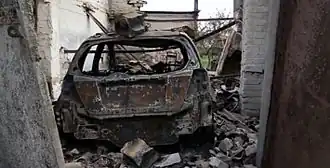 ![]() Ausgebranntes Auto in Ilowajsk nach Gefechten | |||||||||||||