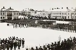Die Aktivitäten Mannerheims richteten sich zunächst in erster Linie gegen die russischen Garnisonen, da er annahm, dass die Unruhen im Land in erster Linie durch die russischen Soldaten und von diesen aufgehetzte kriminelle Elemente verursacht wurden.[21] Am 25. Januar gab Mannerheim den Befehl, die Schutzkorps in der Nacht vom 27. auf den 28. Januar zu mobilisieren und die russischen Garnisonen in Vaasa und fünf anderen Orten in Südösterbotten zu entwaffnen.[22]
