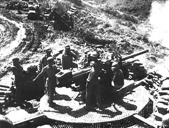 ![]() US-amerikanische Artillerie feuert auf eine japanisch besetzte Position auf Negros | |||||||||||||||||