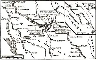 Landung bei Fao – Basra – al-Qurna – Shaiba – Ktesiphon – Belagerung von Kut – – Wadi – Hanna – Dujaila – Kut II – Bagdad – Samarra – Ramadi – Sharqat