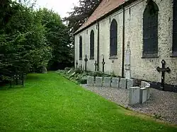 Auf dem Friedhof an der Dreifaltigkeitskirche in Friedrichsberg sind noch Gräber von in der Schlacht gefallenen Soldaten erhalten.