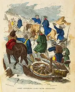 - ↑ vgl. Lerg, Charlotte A.: „Die Amerikanische Revolution.“, S. 44: „[…] amerikanische Truppen Fort Ticonderoga eingenommen und mehrere Kanonen erbeutet hatten“.