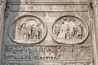 ![]() Die Belagerung von Verona durch die Truppen Konstantins, Darstellung auf dem Konstantinbogen in Rom | |||||||||||||