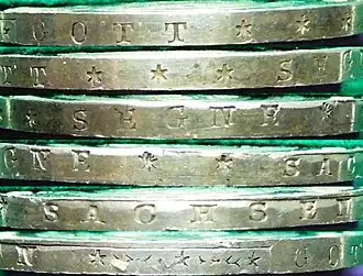 | Randschrift: GOTT SEGNE SACHSEN | ||