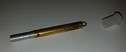 Der Schlagbolzenanzünder besteht im Wesentlichen aus einem durch eine Feder angetriebenen Schlagbolzen, der auf ein Zündhütchen schlägt und dadurch eine Flamme erzeugt.